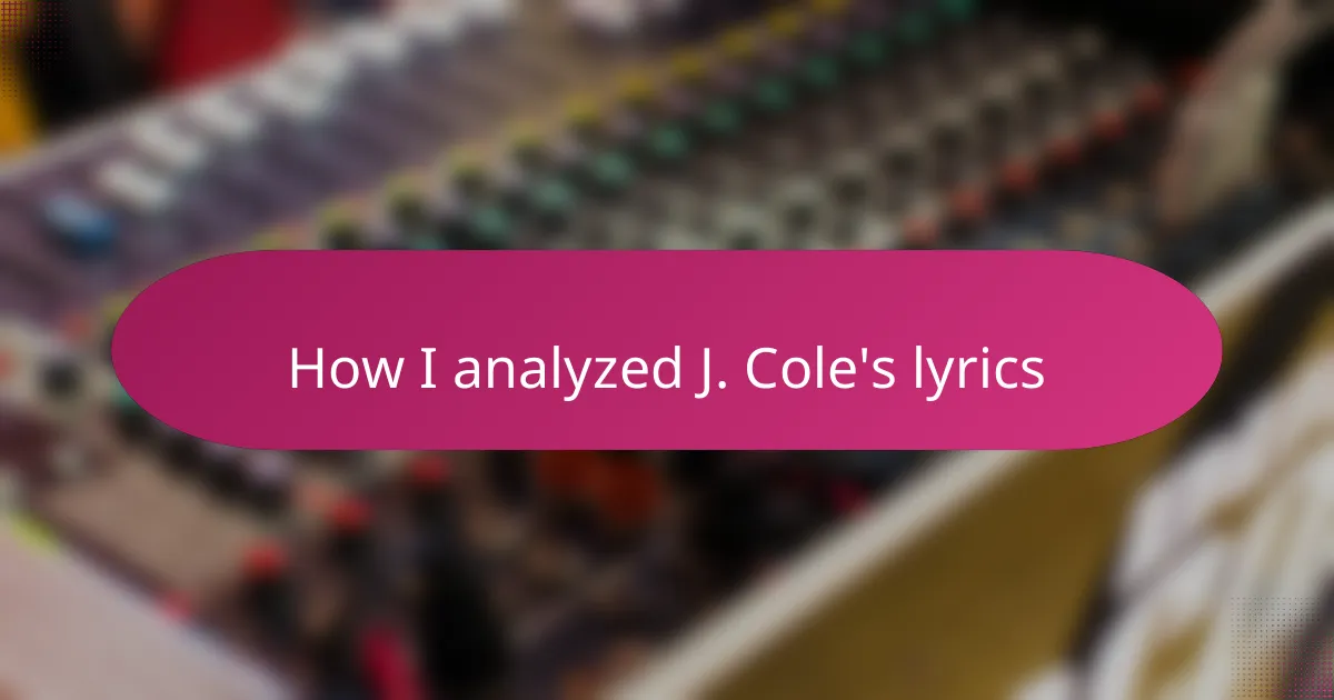 I also experimented with comparing different verses and tracks to spot recurring themes or shifts in tone. This step felt like piecing together a larger narrative, revealing how J. Cole expresses growth and self-reflection over time. Have you noticed how revisiting an artist’s work can deepen your appreciation in unexpected ways? For me, it’s like discovering hidden chapters in a favorite book.